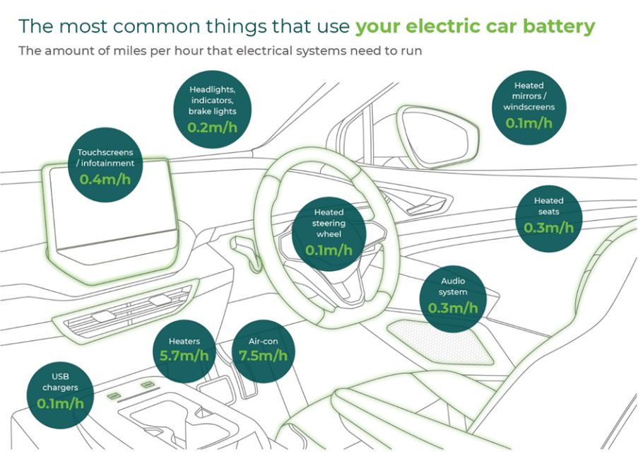 The infographic below shows how many miles per hour these features consume.